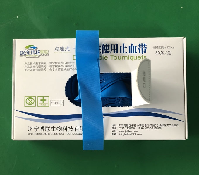 本品適用于醫(yī)療機(jī)構(gòu)在常規(guī)治療及救治中輸液、抽血、輸血,止血時(shí)一次性使用;或肢體出血、野外蛇蟲咬傷出血時(shí)的應(yīng)急止血。